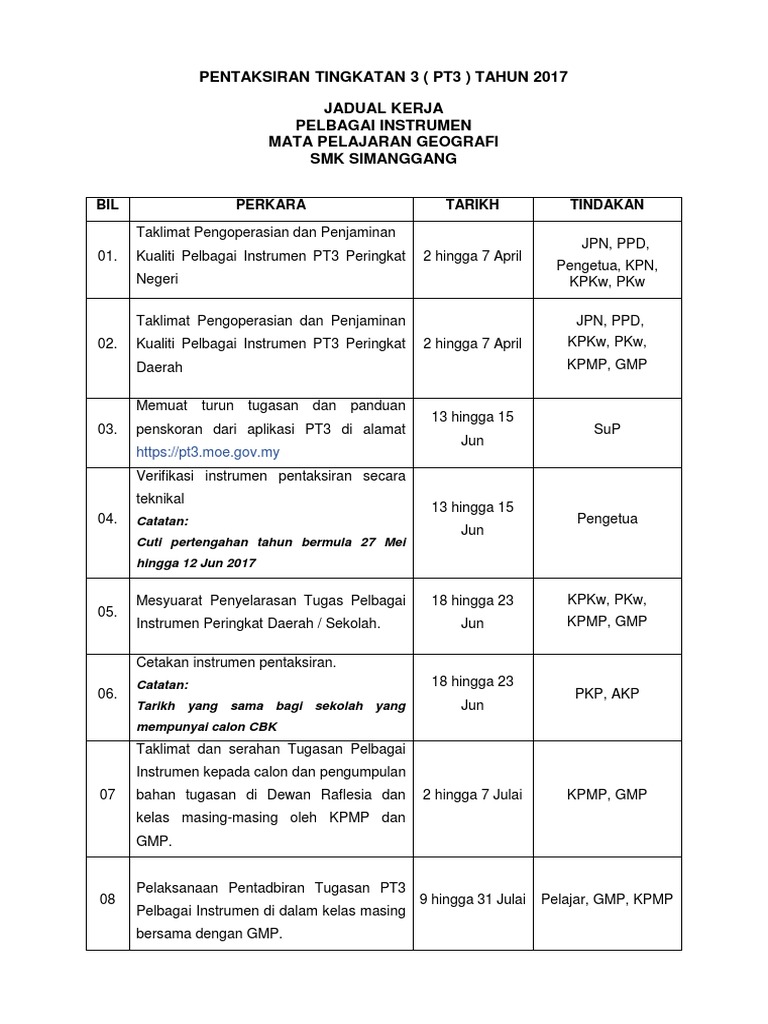 Jadual Peperiksaan Pt3 2021 Pentaksiran Tingkatan 3 from www.permohonan.my We did not find results for: Check spelling or type a new query. Contoh jadual kerja geografi pt3. Maybe you would like to learn more about one of these?