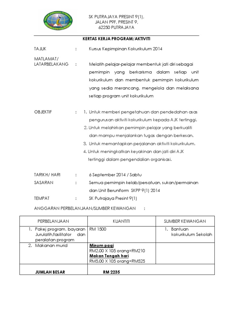 Kertas Kerja Kursus Kepimpinan Kokurikulum / Kertas Kerja Bengkel Kepimpinan Kokurikulum Smk Cheras 2019 Guru Kaunseling Nurhaiza Che Mat / Program serive learning malaysia (sulam).. Mendapatkan kebenaran daripada justeru itu, unit kokurikulum dan unit hal ehwal murid dengan kerjasama unit bimbingan kaunseling serta persatuan ibu bapa dan guru sk. Kertas kerja hari kokurikulum krnival kesenian islam docx. Pengurusan program kokurikulum norma baharuподробнее. Use the download button below or simple online reader. Berikut merupakan kertas kerja bagi program ini.